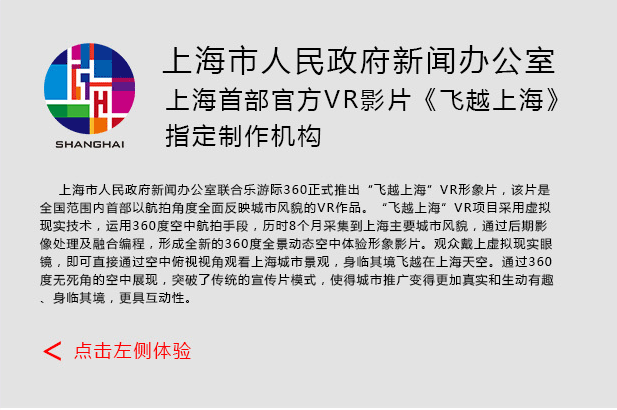 上海乐游际文化传播有限公司(简称:乐游际360VR)是一家拥有当今世界领先实景虚拟现实核心技术– Vita Immersive 360,并将此技术用在VR商用内容制作的新媒体公司。作为中国领先的高端商用VR内容出品公司,业务涵盖VR商用宣传片/VR商用广告/VR环游世界内容出品机构。在商业模式上逐步发展涉及商业零售,旅游,体验式广告和展览展示,公关推广,跨国文化交流,电子商务等多个领域.